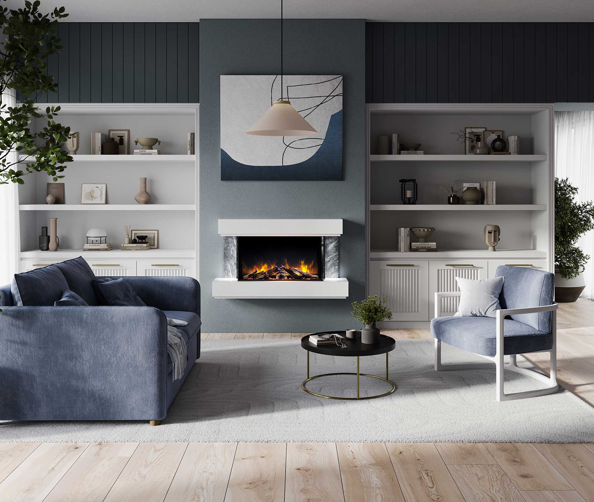 Un riscaldatore nascosto con un incavo ultra sottile di 2 cm attorno al fuoco. Il meccanismo di ribaltamento del vetro consente un’efficiente aspirazione di aria fresca e un flusso di aria calda nella stanza.